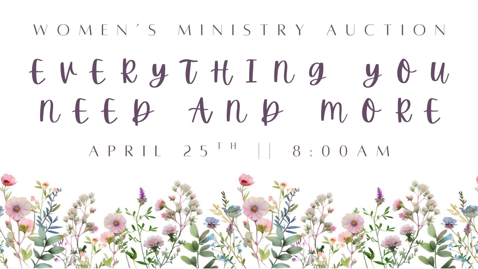 Saturday, April 25th at 8:00am in the Family Center we will have our annual Women’s Ministry Auction! Come and eat an amazing breakfast, place some bids, hopefully win some items, and make some new friends! We hope to see you there!
